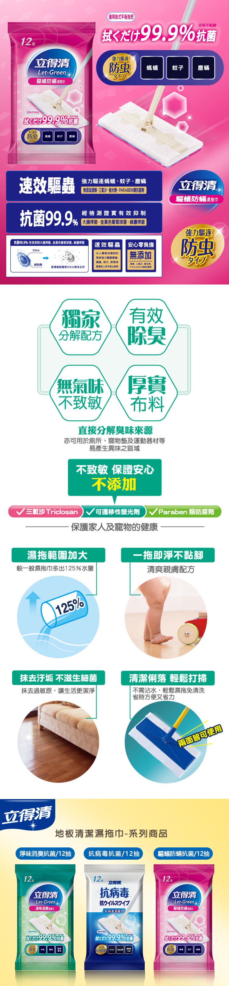 【立得清】地板清潔濕拖巾-驅蟻防螨抗菌(12抽x12包)