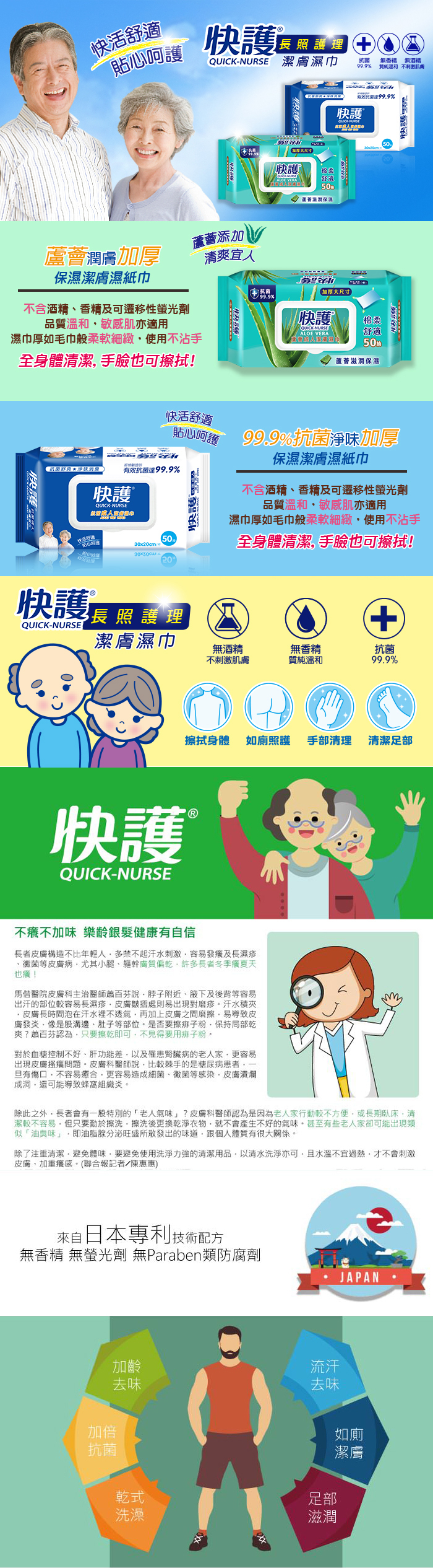 【快護】加大99.9%抗菌淨味保濕潔膚濕紙巾-長照護理專用(50抽x單包)