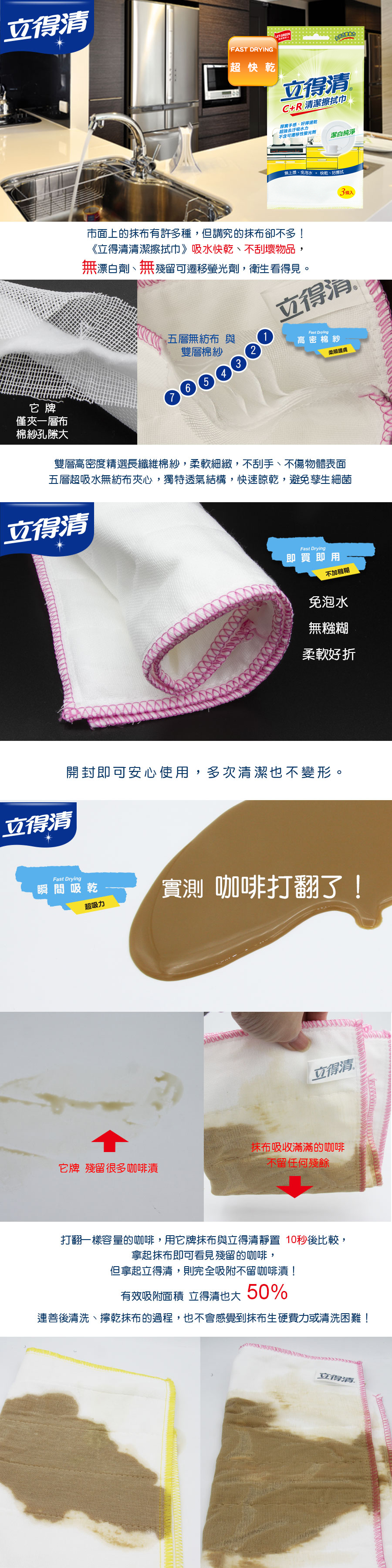 【立得清】 (C+R) 棉紗抹布 快乾型 厚實無紡布 3條/包